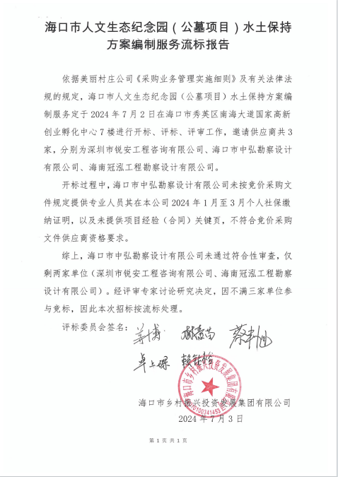 ??谑腥宋纳鷳B(tài)紀念園(公墓項目)水土保持方案編制服務(wù)流標報告